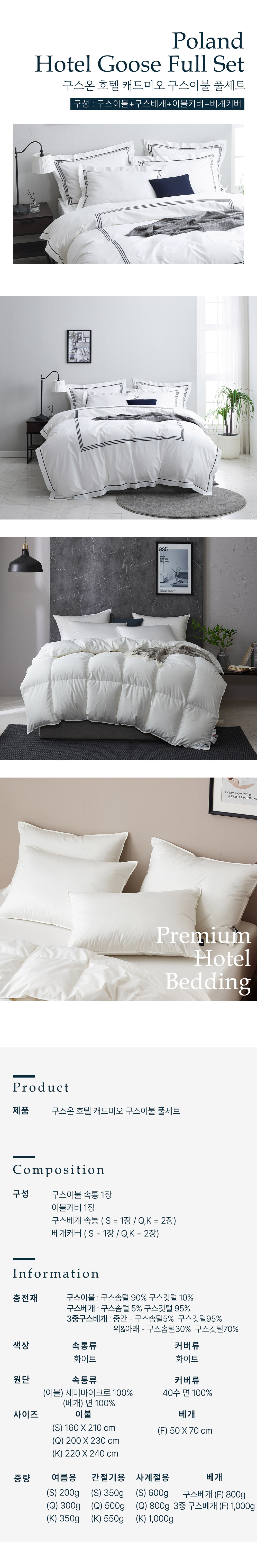 | 모델명 | 폴란드 구스90 호텔 이불+베개+캐드미오차콜 커버 4종 웨딩 세미 패키지 |