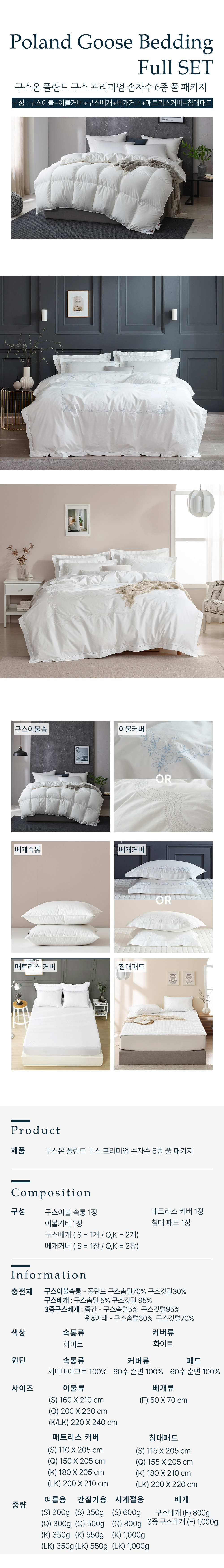 | 모델명 | 폴란드 구스70 호텔 이불 프리미엄 손자수 6종 웨딩/혼수/이사 풀 패키지 |